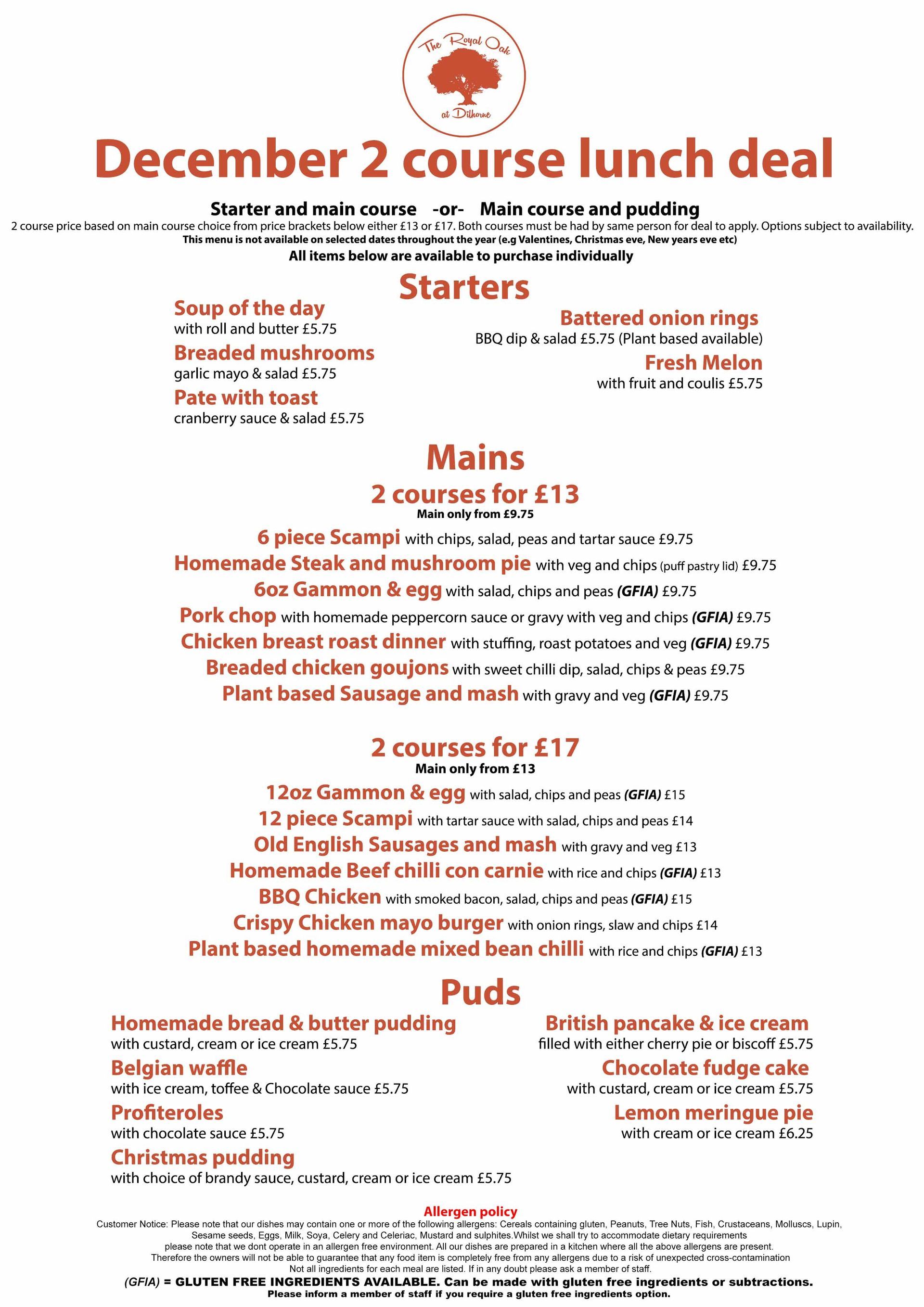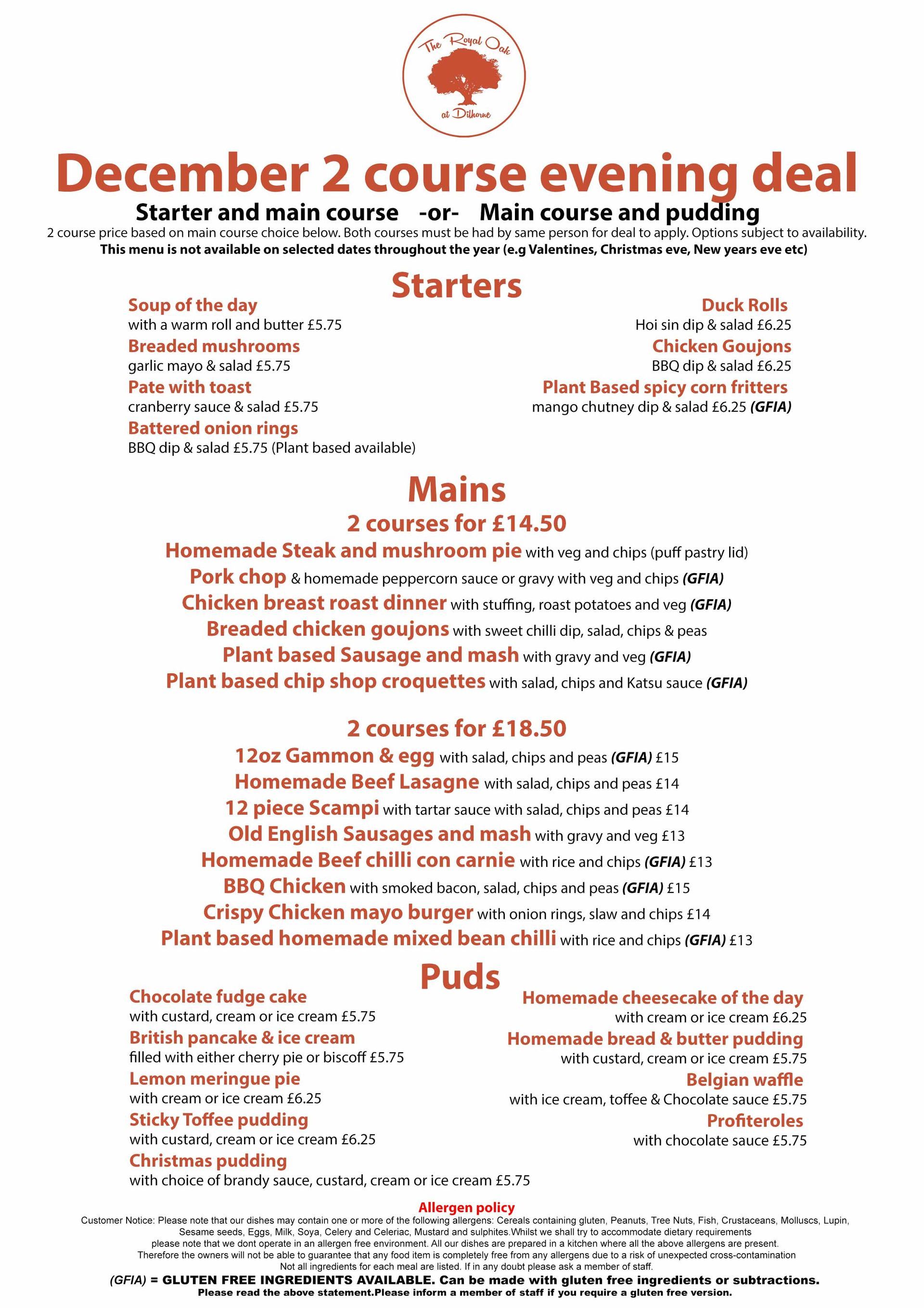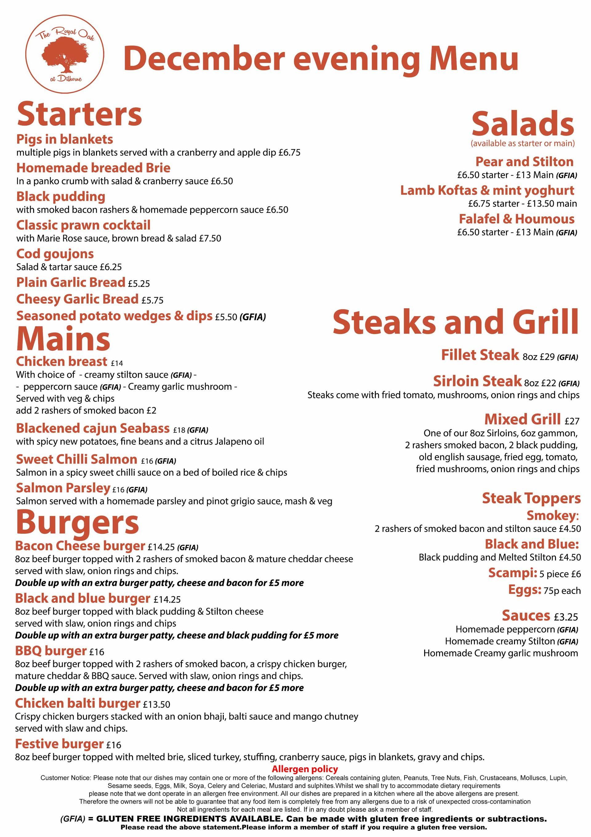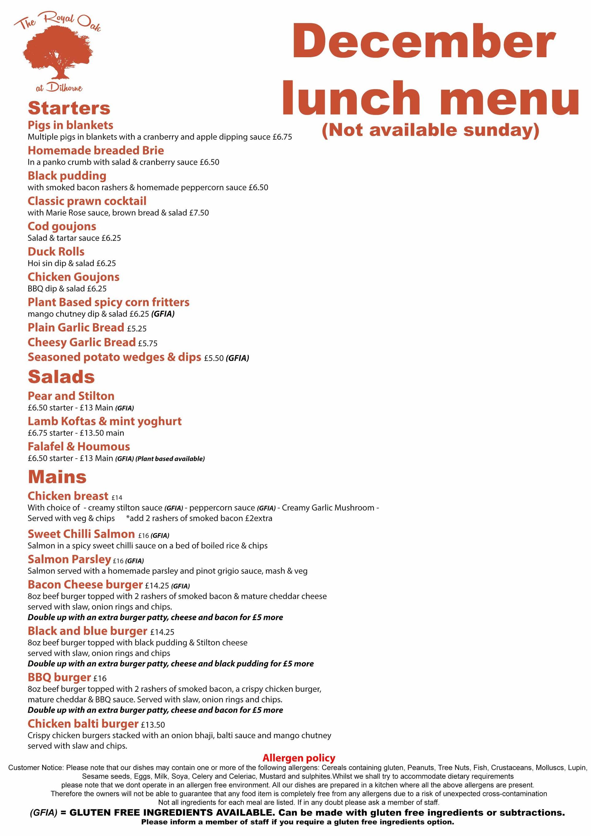 Whist we shall try to accommodate dietary requirements please note that we don't operate in an allergen free environment. All our dishes are prepared in a kitchen where